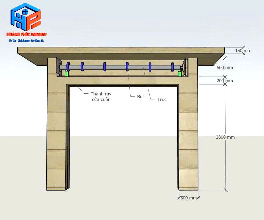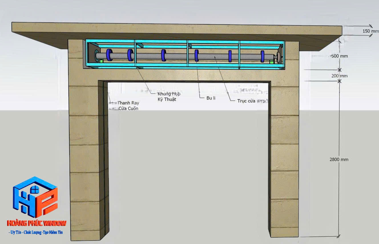 - Cách để ô chờ lắp đặt cửa cuốn.